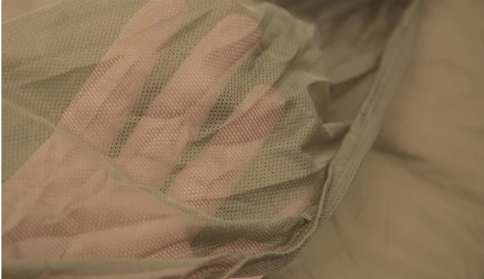 - Integriertes Mosquitonetz an der Gesichts-/Kopföffnung