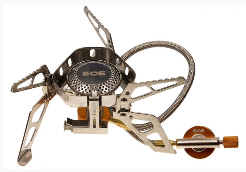 - Brenner von der Gaskartusche abgesetzt (daher ist der Kocher auch niedriger und weniger kippanfällig)