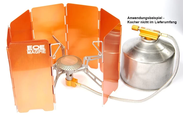 - der Windschutz soll den Spalt zwischen Brennerkopf und Topfboden ´abdichten´, der Topfboden sollte also nicht höher als ca. 135 mm sein. Das ist bei Gaskochern mit abgesetzter Kartusche, Benzinkochern Typ Whisperlite und Spirituskochern meist der Fall