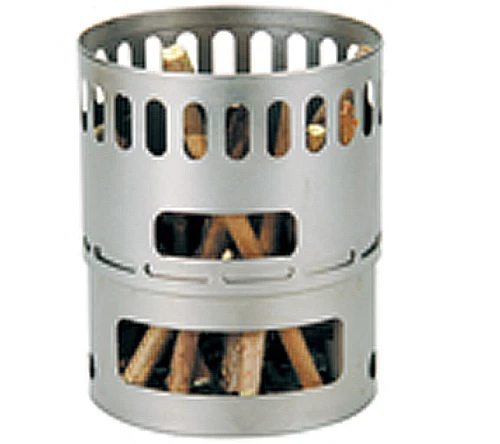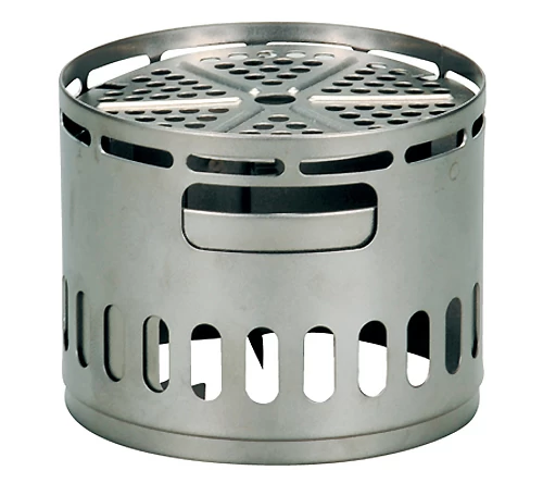 - aus einem Oberteil, das einen Topf mit größerem Durchmesser hält. Dieses Oberteil dient als Windschutz für die Flamme, hat aber auch einen seitlichen großen Windeinlass (der aus dem Wind gedreht werden kann), der auch bei Nutzung mit Festbrennstoffen zum Nachfeuern genutzt werden kann. Die obere Lochreihe dient dem Entweichen von Rauch und Abgasen, wenn auf dem Teil ein Topf steht.