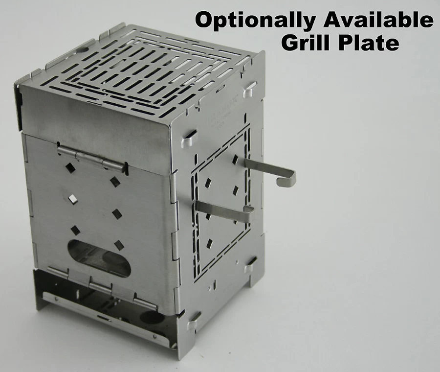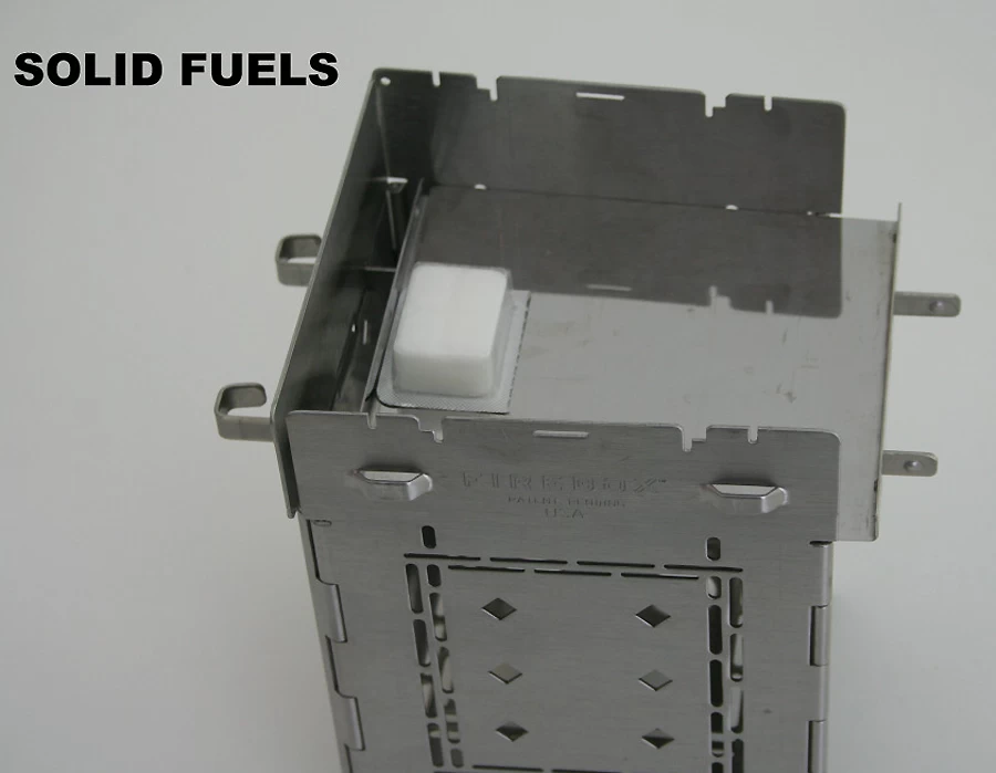 - alternativ auch mit Esbit, Spiritus oder Gas zu betrieben (hierzu sind die entsprechenden Kocher/Brenner notwendig, diese sind nicht im Lieferumfang) – die Firebox dient dann als Brennerhalterung, Windschutz und Topfaufsatz