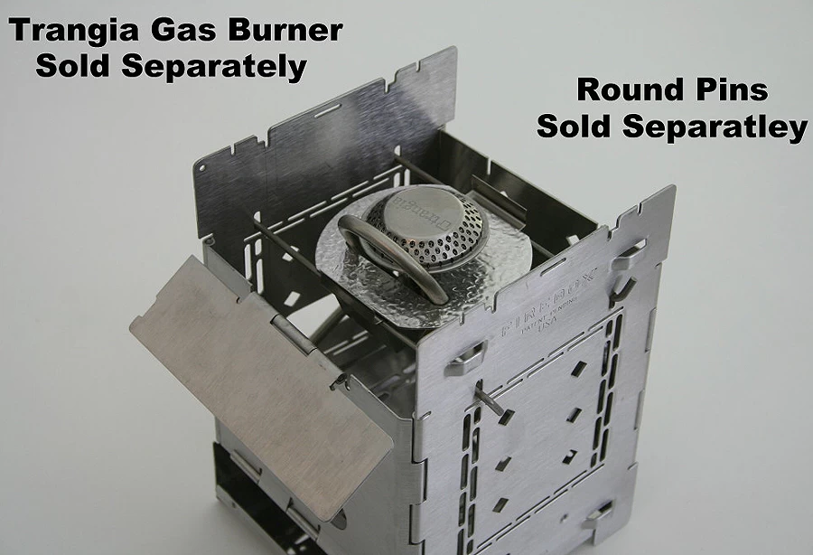 - Wird der Kocher mit Brennern wie Trangia Spiritusbrenner, Spiritus-Gel-Brenner oder Esbit oder ähnlichem betrieben, dient die Aschepfanne auch als Zwischenboden, durch dessen Nutzung der Alternativ-Brenner mit Hilfe der Stäbe (Fire-Sticks, s.u.) auf die optimale Höhe unter den Topfboden gehoben werden kann
