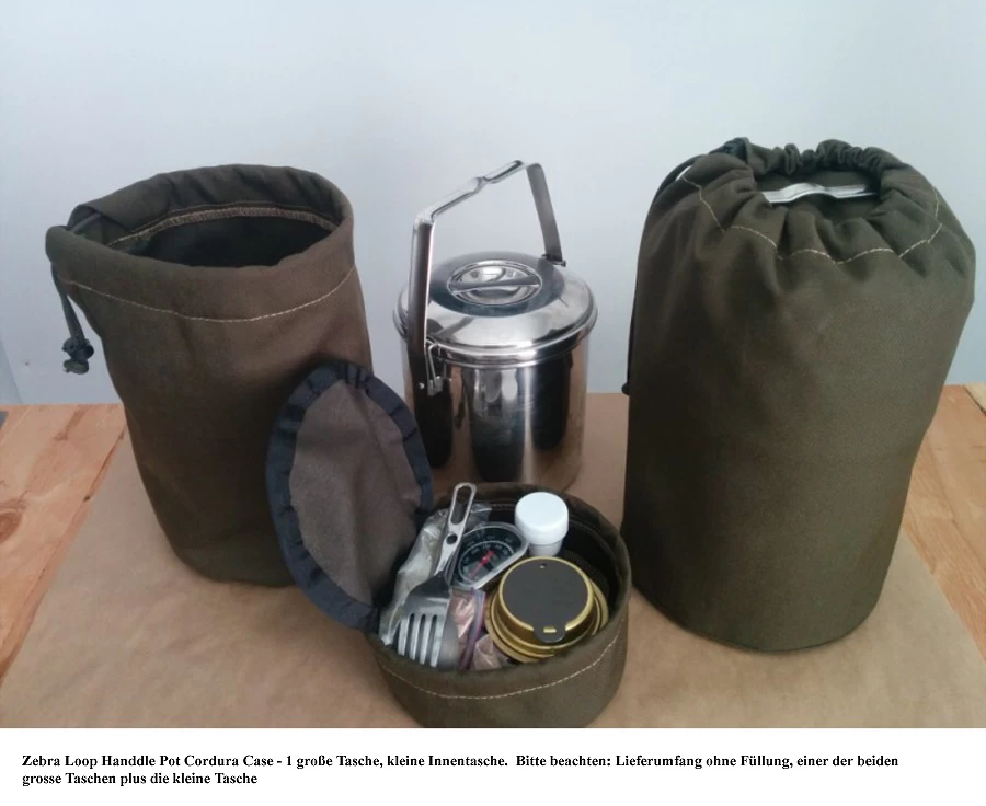 Warum überhaupt eine Tasche? Zebra Billy Pots sind für die Nutzung mit / auf offenem Feuer entworfen (bei Bushcraft oder Grill-Camping). Da dabei der Boden oder der untere Teil des Pot aussen Ruß abbekommt, schützt die Tasche andere Ausrüstung vor Verschmutzung.