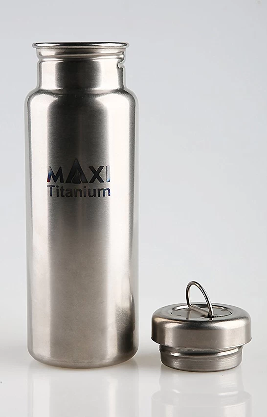 Ultraleichte Wasserflasche aus geschmacksneutralem und stabilem Titan.