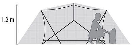 Sehr gute Entlüftung durch variable Apsiden-RV. IZ komplett aus Moskitonetz – optimal in gemäßigten Zonen, weniger gut für kalt-stürmische Gegenden.