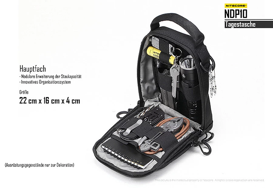 Das NDP10 ist eine kleine und kompakte Mehrzwecktasche für die Organisation von Kleinteilen wie Taschen-Lampen, Multitools, Ladegeäte und -kabel, Akkus… im täglichen Gebrauch, aber auch auf Tour. Megarobust, sehr flexibel in der Einteilung.
