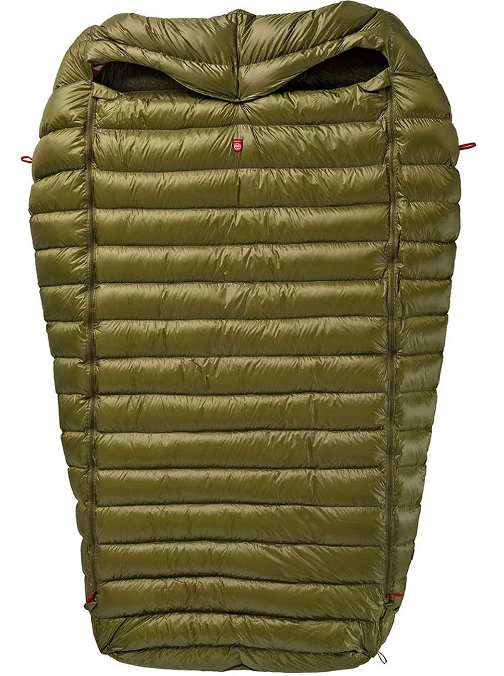 Ein Schlafsack für Paare, die outdoors (oder im Van) auf Touren bis knapp an den Gefrierpunkt unterwegs sind. Und die „zusammen kuscheln wollen“. Mit dem 4Two braucht man nicht 2 Schlafsäcke eventuell fummelig zu koppeln – es ist schon ein Doppelschlafsack.