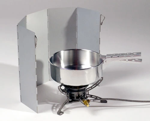 Ein Windschutz aus 5 zusammenhängenden faltbaren Alu-Segmenten – steigert die Heizleistung bzw. Brennzeit Ihres Kochers.