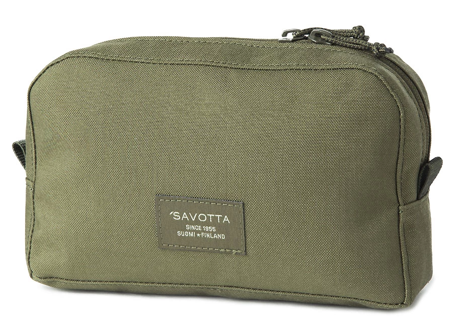 Eine Zubehör-Tasche im Horizontal-Schnitt. Kann auf Gürteln separat getragen werden, passt mit dem PALS-Befestigungssystem auch auf breitere Rucksäcke mit diesem System -vorne, oben, oder bei entsprechender Tiefe auch an die Seite.