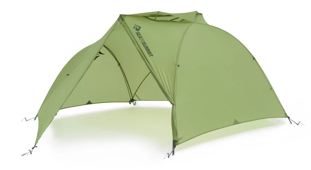 prinzipiell freistehend – zur optimalen Nutzung z.B. der Apsiden und als Wetterschutz sollten aber mindestens 6 Heringe gesetzt werden - Großzügiges Innenraummaß durch das Tension Ridge Design: