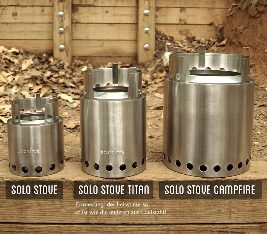 Der Original US-Holzofen Solo Stove™ ist ein geniales Teil! Viele patentierte Kniffe sorgen für hohe Leistungsfähigkeit- unerreicht von ähnlich aussehenden Nachbauten. Die Amis sagen „Holzofen“, er frisst aber eigentlich alles, was brennt: ausser Holzspänen und -stücken auch Moos, Borke, Pellets, Tannenzapfen.