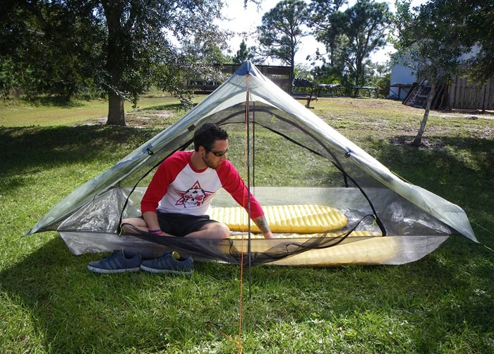 „This tent is huge. With a long sleeping bag, I never touched the ends of the tent or got the bag wet at all. At one point, we (three 6ft tall guys) all sat in there together playing cards and were comfortable. Setup took about two minutes each night.“BoredInTheSouth Reviews the Duplex Tent